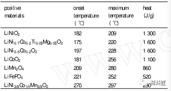 常見(jiàn)正極材料的DSC測(cè)試結(jié)果: