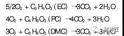 由于內(nèi)部短路、外部加熱,或者電池自身在大電流充放電時(shí)自身發(fā)熱,使電池內(nèi)部溫度升高到90℃~100℃左右,鋰鹽LiPF6開(kāi)始分解;對(duì)于充電狀態(tài)的碳負(fù)極化學(xué)活性非常高,接近金屬鋰,在高溫下表面的SEI膜分解,嵌入石墨的鋰離子與電解液、黏結(jié)劑會(huì)發(fā)生反應(yīng),進(jìn)一步把電池溫度推高到150℃,此溫度下又有新的劇烈放熱反應(yīng)發(fā)生,例如電解質(zhì)大量分解,生成PF5,PF5進(jìn)一步催化有機(jī)溶劑發(fā)生分解反應(yīng)等。