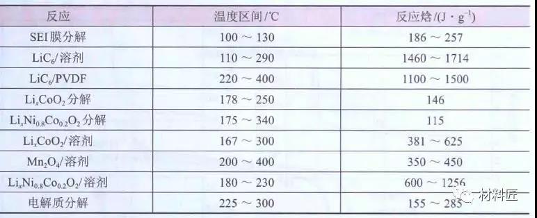 鋰離子電池各種放熱反應(yīng)的溫度區(qū)間與反應(yīng)焓