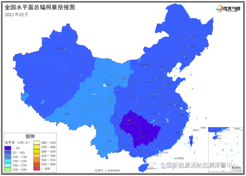 附圖4 全國2021年2月水平面總輻照量預(yù)報(bào)圖