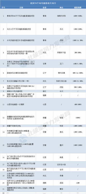 以下僅為部分風(fēng)電儲能項(xiàng)目概要: