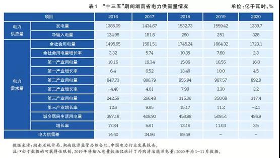 從全省用電結(jié)構(gòu)來看,第二產(chǎn)業(yè)尤其是高能耗高排放工業(yè)用電在全社會(huì)用電量中占絕對(duì)主導(dǎo)地位,占比約為53%。第三產(chǎn)業(yè)用電量雖然小于第二產(chǎn)業(yè),但是已經(jīng)成為拉動(dòng)全省用電量增長的主要?jiǎng)恿Γ?015~2019年平均增長率為11.74%,遠(yuǎn)高于第一和第二產(chǎn)業(yè)。從電力供應(yīng)情況來看,湖南省電力供應(yīng)來源為該省電源發(fā)電和跨區(qū)跨省輸入電量兩部分。截至2019年底,湖南本省發(fā)電量為1559.42億千瓦時(shí),跨區(qū)跨省輸入清潔能源電量為244億千瓦時(shí)。從整體來看,“十三五”期間湖南省電力供應(yīng)量與電力需求量保持基本平衡,甚至在部分年份電力供應(yīng)量略有富余,因此從全年電力供需情況來看,湖南省供電量是充足的(見表1)。