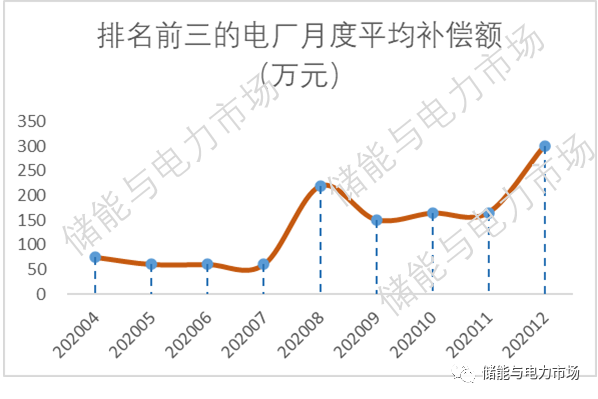 而排名前三位的電廠月度補償平均值,也逐漸上漲至2020年12月的301萬。8月份現(xiàn)貨市場運行后,這一數(shù)值一直維持在150萬以上。這一數(shù)據(jù)看似不高,但如果投用火儲聯(lián)合調(diào)頻系統(tǒng),調(diào)頻效果達到區(qū)域內(nèi)的領(lǐng)先水平,那么200萬左右的月度收益,對于總投資在3000-4000萬左右的火儲聯(lián)合調(diào)頻項目來說,應(yīng)該說非常具有吸引力。