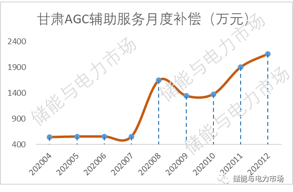 2020年8月進入現(xiàn)貨市場持續(xù)運行后,甘肅的調(diào)頻輔助服務(wù)的補償額從556萬/月上升至1644萬每月,并持續(xù)保持在1300萬/月以上。2020年12月,取得全年最高的2159萬。