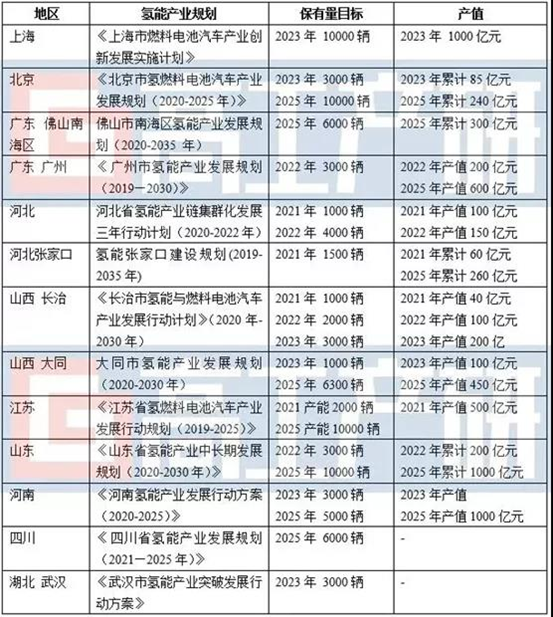 資料來源:各政府網(wǎng)站,高工產(chǎn)研氫電研究所(GGII)整理