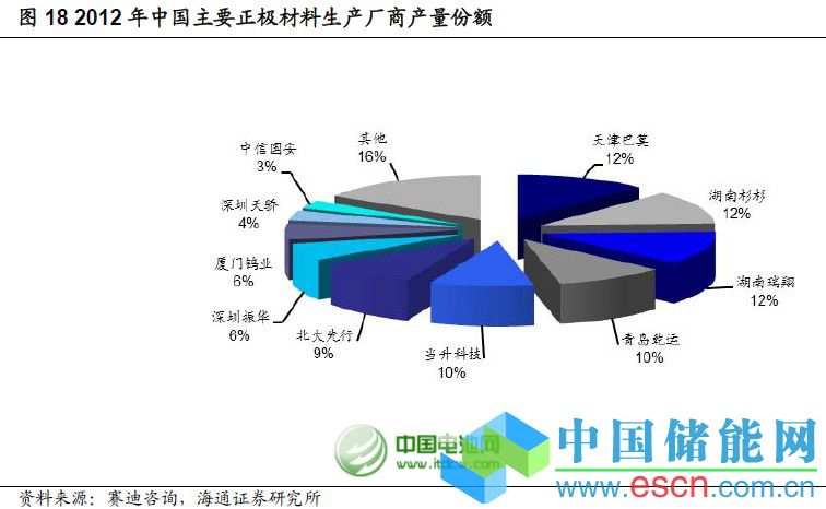 中國方面,2009-2011 年正極材料增速保持在25%左右。2012 年隨著鋰離子電池在動力電池領域應用逐步成熟,整個正極材料的產量增長幅度39%以上的,中國正極材料的產量已經占到全球的43%。