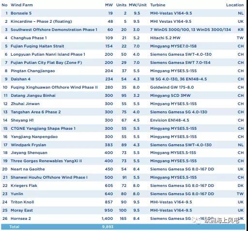 15個新增風(fēng)場主要來自歐洲和中國,其中最大的兩個風(fēng)場都在荷蘭投產(chǎn);