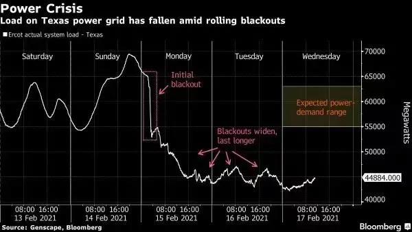 2月15日起,受冬季風(fēng)暴影響,得克薩斯州限電1650萬千瓦,超過400萬個家庭和企業(yè)在冬季忍受停水停電之苦,甚至有17人因天氣寒冷不幸喪生。與此同時,交易市場上的電價一度飆升100倍。