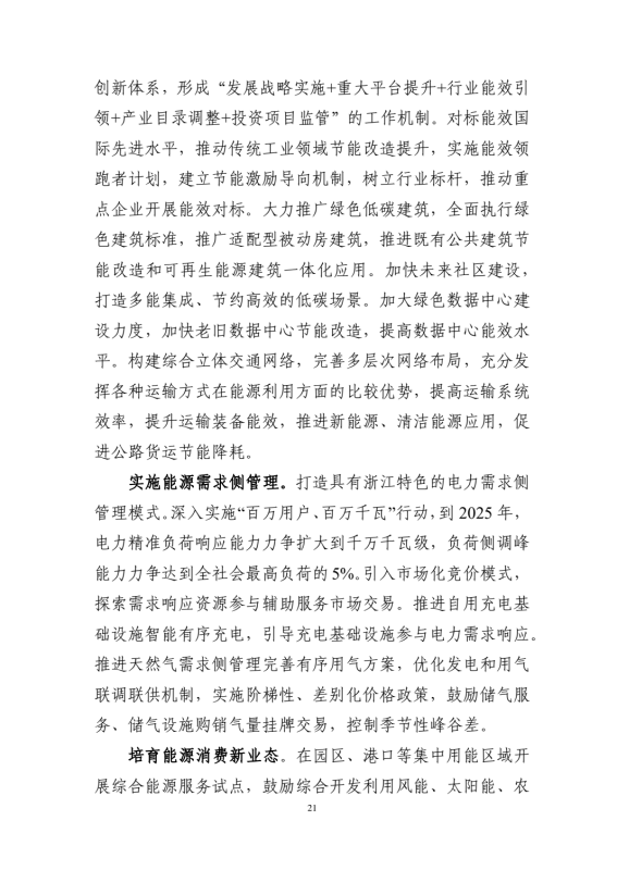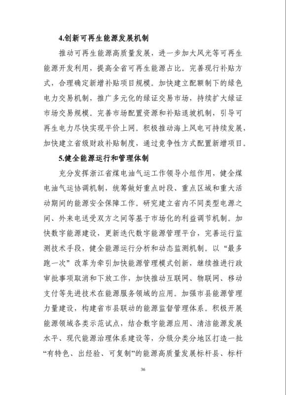 在能源基礎設施融合發(fā)展方面,文件提出推進能源設施多能互補。積極推進風、光、水、儲多能互補能源模式發(fā)展。推動儲能電站、虛擬電廠等示范工程建設,加強多種電源與儲水、儲熱、儲氣設施集成互補,構建面向高比例可再生能源的基礎設施協調支撐體系。依托浙江智慧能源示范區(qū)建設,建成一批縣(區(qū))級、園區(qū)級智慧能源服務示范工程,實現橫向“電熱冷氣水”、縱向“源網荷儲調”的多元能源形態(tài)協同轉化。
