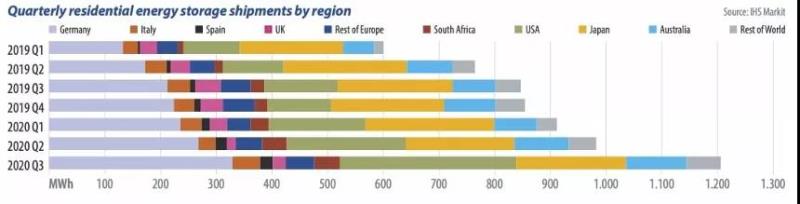 IHS Markit預(yù)計(jì),德國第四季度的強(qiáng)勁表現(xiàn)將使其首次超越日本,成為全球最大的家用儲能市場。在一定程度上,這種持續(xù)增長是由房主選擇投資房屋,而不是旅游或度假(因?yàn)槁糜蔚倪x擇受到嚴(yán)重限制),以及支持屋頂太陽能和儲能的補(bǔ)貼計(jì)劃推動的。
