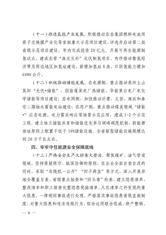 在電源側(cè),重點(diǎn)推動(dòng)萊州土山昊陽“光伏+儲(chǔ)能”、國能蓬萊電廠熱儲(chǔ)能、華能黃臺電廠電化學(xué)儲(chǔ)能等項(xiàng)目建設(shè);在電網(wǎng)側(cè),加快推動(dòng)沂蒙、文登、濰坊和泰安二期抽水蓄能電站建設(shè);在用戶側(cè),重點(diǎn)推動(dòng)煤炭領(lǐng)域“儲(chǔ)能 +”應(yīng)急電源、電力需求響應(yīng)等場景示范應(yīng)用,建成1-2個(gè)示范工程。
