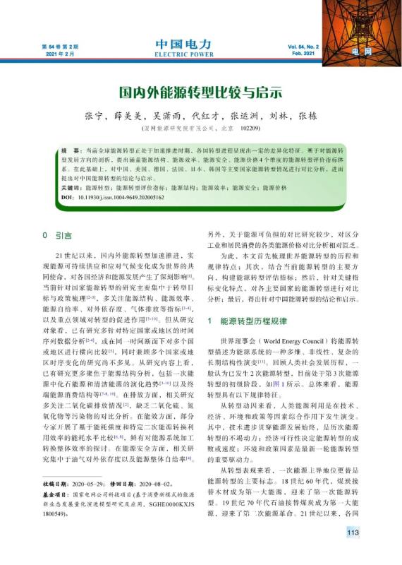 ZHANG Ning, XUE Meimei, WU Xiaoyu, et al. Comparison and enlightenment of energy transition between domestic and international[J]. Electric Power, 2021, 54(2): 113-119, 155.