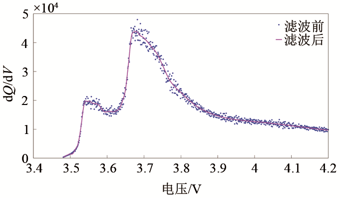 第二類特征量為對傳感器直接采集數(shù)據(jù)進(jìn)一步挖掘所得到的特征量。其中,恒流充電階段容量增量(incremental capacity,IC)曲線的峰值是有效表征鋰電池內(nèi)部理化特性的狀態(tài)量,IC曲線定義為容量與電壓的微分,見式(1)