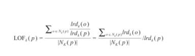 局部異常因子算法(local outlier factor,LOF)是通過計(jì)算每個(gè)樣本的局部離群因子來判斷其離群程度,是一種基于密度的離群點(diǎn)檢測方法。能夠依據(jù)設(shè)定的閾值精準(zhǔn)定位無效的離群點(diǎn),避免了依據(jù)數(shù)據(jù)分布判別離群值的方法存在的誤清洗有效數(shù)據(jù)的問題。特征量中采樣點(diǎn)p鄰域點(diǎn)的局部可達(dá)密度與點(diǎn)p的局部可達(dá)密度之比的平均數(shù)就表示為點(diǎn)p的局部離群因子,見式(2)