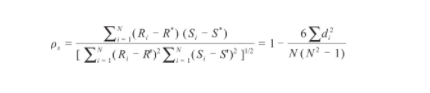 式中,Ri和Si分別是觀測值i的取值等級;R*和S*分別是變量x和y的平均等級;di=Ri-Si表示兩列成對變量的等差級數(shù);N是觀測值的總數(shù)量。