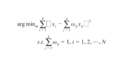式中,xij表示點(diǎn)xi的第j個(gè)近鄰點(diǎn),ωij表示樣本點(diǎn)xi鄰域內(nèi)第j個(gè)近鄰點(diǎn)的重構(gòu)權(quán)重,當(dāng)xij不屬于xi的鄰域時(shí),ωij=0。約束條件圖片表示權(quán)值矩陣ω中的每一行相加為1。