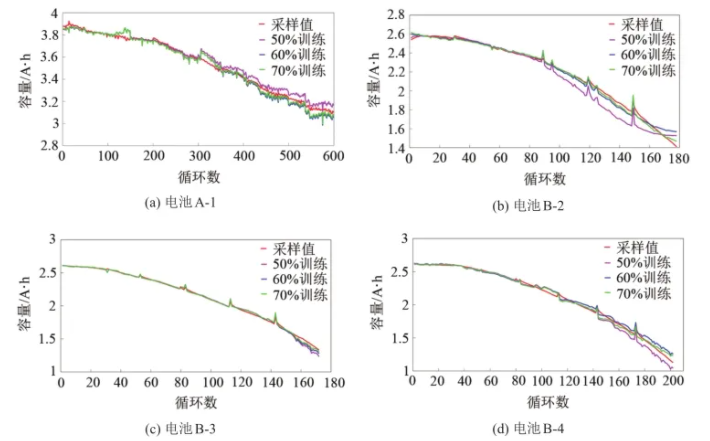 圖10 電池A-1、B-2、B-3和B-4訓(xùn)練測試結(jié)果