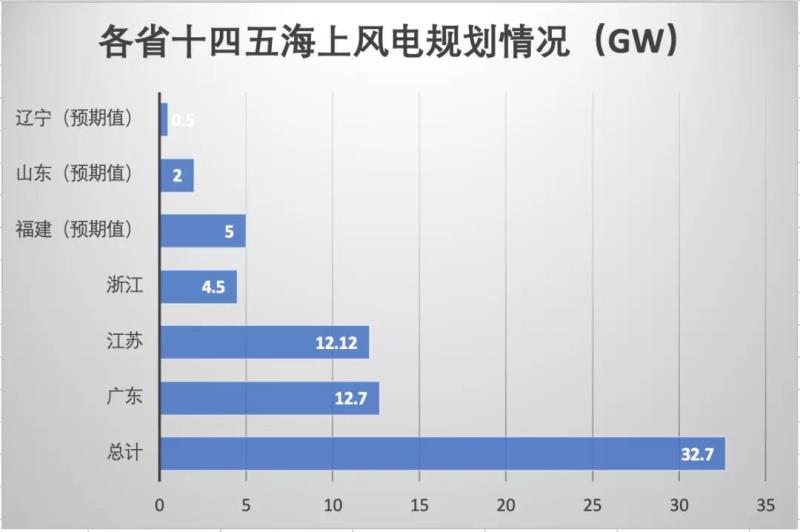 根據國信證券經濟研究所預測,“十四五”期間,各省海上風電規(guī)劃規(guī)模將達到32.7GW,其中2021年的預期建設量將達到8.3GW。