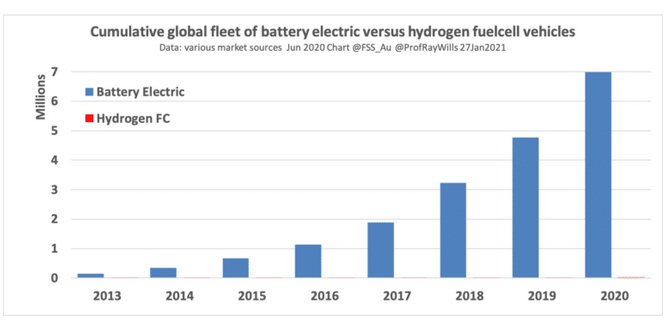 這些數(shù)字遠(yuǎn)大于氫氣燃料電池汽車的數(shù)量,而目前氫燃料電池汽車只有幾萬輛,并且現(xiàn)在仍在生產(chǎn)更多電動(dòng)汽車。