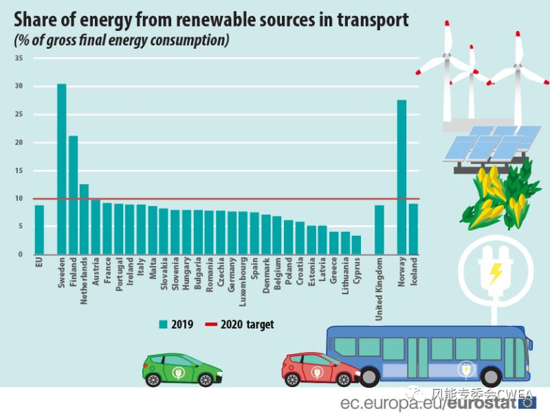 2019年,歐盟27國用于運(yùn)輸活動的可再生能源占比達(dá)到8.9%。