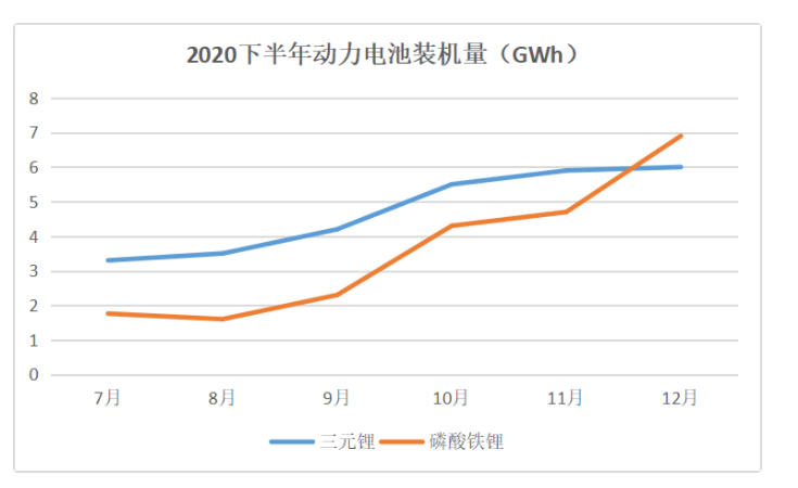 中國汽車工業(yè)協(xié)會(huì)最新統(tǒng)計(jì)數(shù)據(jù)顯示,2020年12月中國動(dòng)力電池裝車量13GWh,同比增長33.4%,環(huán)比上升22.0%,繼續(xù)保持增長趨勢(shì)。其中,三元鋰電池共計(jì)裝車6GWh,同比增長24.9%,環(huán)比上升2.2%;磷酸鐵鋰電池共計(jì)裝車6.9GWh,同比上升45.5%,環(huán)比上升46.0%,增速遠(yuǎn)超三元鋰電池。