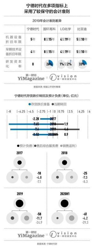 根據(jù)中信證券的核算,通過縮短折舊年限、研發(fā)成本100%費用化、提前計提存貨跌價,以及計提大量的電池質保費用、兌現(xiàn)銷售返利等會計手段,寧德時代在2019年將最多可達42億元的凈利潤“處理”成了運營成本。
