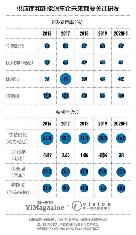 作為電動車產(chǎn)業(yè)鏈的中游環(huán)節(jié),如果專注于動力電池研究,就意味著進入了一個高研發(fā)投入、長回報周期的“風險行業(yè)”。以行業(yè)龍頭LG化學為例,集團資源和外部基金可以支撐起公司每年相當于20億元至30億元人民幣的研發(fā)投入,卻無法保證公司最基礎的毛利率始終為正。