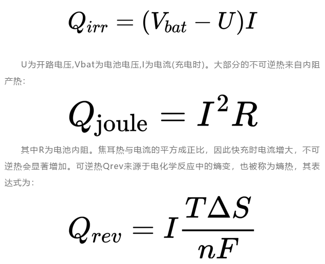 鋰離子電池的產(chǎn)熱可分為可逆和不可逆過程。其中不可產(chǎn)熱Qirr的表達(dá)式如下: