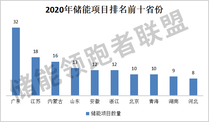 中國儲(chǔ)能網(wǎng)訊:2020年,隨著3060碳達(dá)峰和碳中和目標(biāo)的提出,我國電力去碳化、清潔化進(jìn)程將再次提速,包括儲(chǔ)能在內(nèi)的新能源行業(yè)進(jìn)入發(fā)展“快車道”。作為風(fēng)電、光伏平價(jià)時(shí)代高比例消納可再生能源的關(guān)鍵支撐和削峰填谷保障并網(wǎng)安全的必要保障,儲(chǔ)能在促進(jìn)全球電力低碳轉(zhuǎn)型進(jìn)程中不可或缺。相信在“十四五”期間,儲(chǔ)能行業(yè)將迎來商業(yè)化、規(guī)?;闹匾l(fā)展窗口期。據(jù)EESA統(tǒng)計(jì),2020年共有193個(gè)儲(chǔ)能項(xiàng)目有動(dòng)態(tài)更新(處于施工安裝、竣工驗(yàn)收階段),規(guī)??傆?jì)為3604.093MW / 5825.966MWh。其中排名前十的省份分別是廣東省、江蘇省、內(nèi)蒙古、山東省、安徽省、浙江省、北京市、青海省、湖南省、河北省。廣東省作為2020年的儲(chǔ)能大省,儲(chǔ)能項(xiàng)目共32個(gè),位居中國第一。