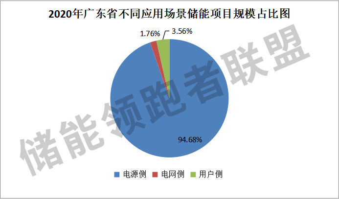 2020年廣東省不同應(yīng)用場景儲(chǔ)能項(xiàng)目規(guī)模占比圖: