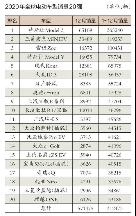 除了五菱宏光MINIEV以外,中國(guó)其他小型電動(dòng)車的表現(xiàn)也十分亮眼,上汽寶駿E系列總排名攀升至第9,長(zhǎng)城黑貓躍升至第10,奇瑞eQ升至第17。其中,長(zhǎng)城黑貓2020年12月銷量成功破萬(wàn)輛,創(chuàng)下新的銷量紀(jì)錄。此外,廣汽埃安S、比亞迪秦EV、上汽名爵eZS、理想ONE等中國(guó)品牌車型也紛紛躋身榜單前20。值得一提的榜單“遺珠”當(dāng)屬比亞迪漢,該車去年7月上市,2020年共售出2.9萬(wàn)輛,其中去年12月售出創(chuàng)紀(jì)錄的9000輛,預(yù)計(jì)2021年將成為20強(qiáng)榜單中的“熟面孔”。