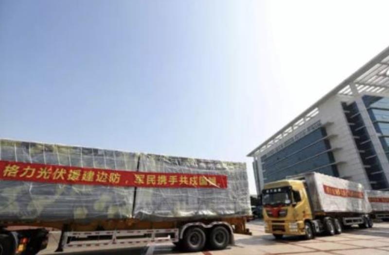 (圖為格力“光伏戰(zhàn)士之家”集裝營房運輸場景)