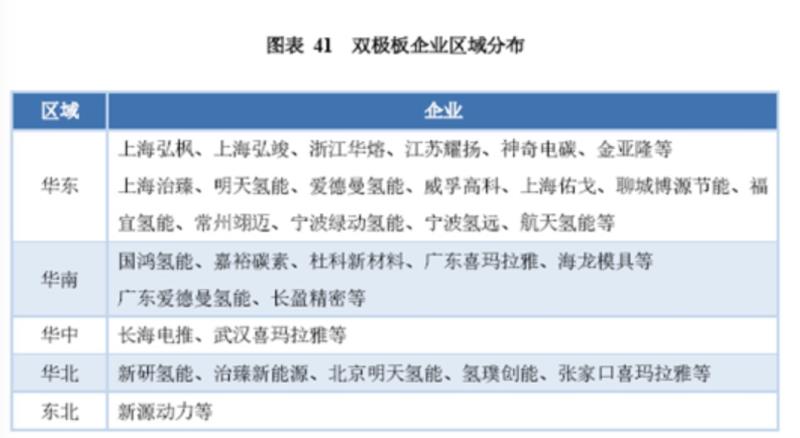 除了主營業(yè)務(wù)是雙極板的企業(yè)以外,國內(nèi)有不少電堆企業(yè)涉足雙極板領(lǐng)域,這些企業(yè)通過整合雙極板、膜電極、電堆等核心部件,打造燃料電池產(chǎn)業(yè)鏈閉環(huán)。目前國內(nèi)涉足雙極板業(yè)務(wù)的電堆企業(yè)主要有明天氫能、愛德曼、國鴻氫能、新研氫能、氫璞創(chuàng)能、新源動(dòng)力等。