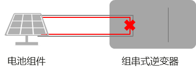 當(dāng)前的集中式方案一般使用16/24路直流匯流箱將組件功率進(jìn)行匯集,采用支路熔絲和匯流斷路器進(jìn)行保護(hù),因光伏組件短路電流僅為額定電流的1.1倍,無(wú)法達(dá)到熔絲和斷路器的保護(hù)電流,因此現(xiàn)有的直流保護(hù)器件均無(wú)法動(dòng)作。具體原理如下: