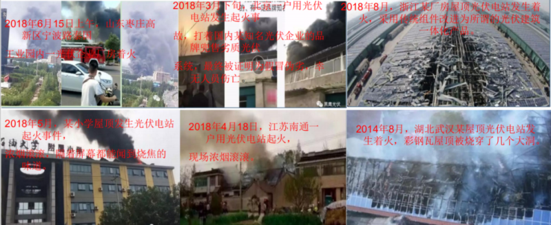 火災(zāi),是光伏電站的最大安全隱患。據(jù)記者統(tǒng)計(jì),光伏行業(yè)近3年內(nèi)已有45起典型的火災(zāi)事故。2020年2月2日,山西運(yùn)城稷山縣太陽(yáng)能光伏發(fā)電項(xiàng)目所在的山坡上發(fā)生火災(zāi);2018年4月19日,安徽銅陵某地面光伏電站發(fā)生火災(zāi),整個(gè)電站一片狼藉,組件基本被燒光,只剩下一些凌亂散落的金屬支架;2015年5月,蘋(píng)果公司一直引以為傲的位于亞利桑那Mesa的工廠屋頂突然起火,起火點(diǎn)是大樓屋頂?shù)墓夥M件,現(xiàn)場(chǎng)濃煙四起,光伏組件被燒毀……