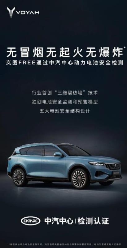 近日,中國(guó)汽車(chē)技術(shù)研究中心有限公司根據(jù)今年元旦開(kāi)始實(shí)施的新國(guó)標(biāo),GB 38031-2020 《電動(dòng)汽車(chē)用動(dòng)力蓄電池安全要求》,對(duì)嵐圖FREE純電版搭載的三元鋰電池進(jìn)行檢測(cè)。