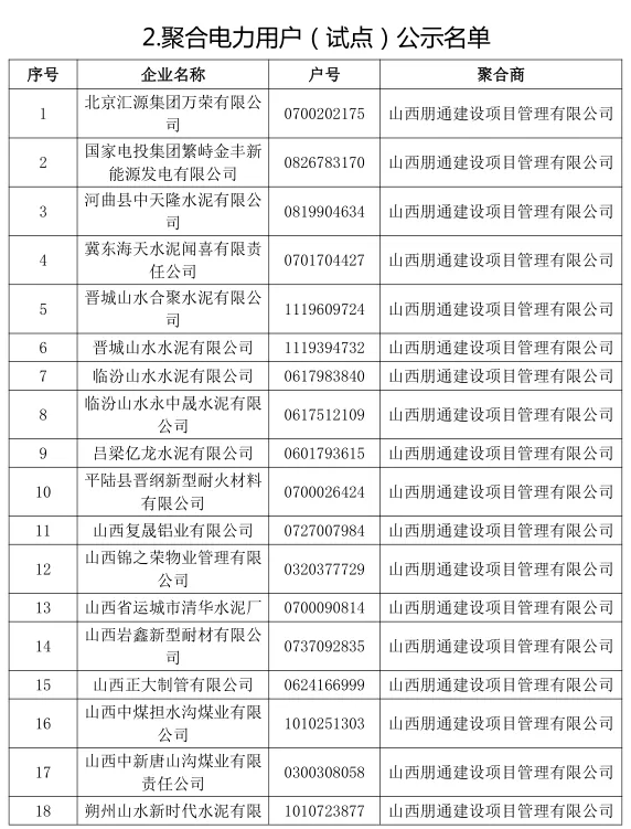 附 件:輔助服務(wù)聚合商及聚合電力用戶(試點(diǎn))公示名單