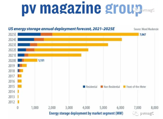 Wood Mackenzie報(bào)告稱(chēng),去年第二至三季度,美國(guó)儲(chǔ)能市場(chǎng)出現(xiàn)了240%的飆升,7月至9月期間的476兆瓦發(fā)電量創(chuàng)下了新的紀(jì)錄——這其中一半以上是由于Gateway項(xiàng)目。Wood-Mackenzie預(yù)計(jì)美國(guó)市場(chǎng)將從2020年底的逾1吉瓦增長(zhǎng)到2025年的7.5吉瓦,漲幅為6倍。