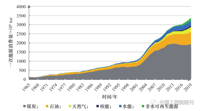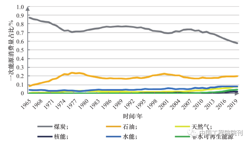 圖5 中國一次能源消費結構變化曲線