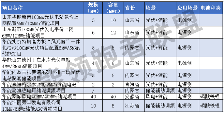 以下為中國華能集團(tuán)儲(chǔ)能項(xiàng)目總表: