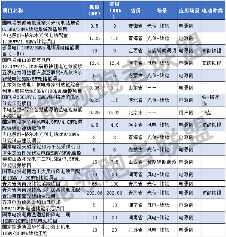 以下為國電投儲(chǔ)能項(xiàng)目總表: