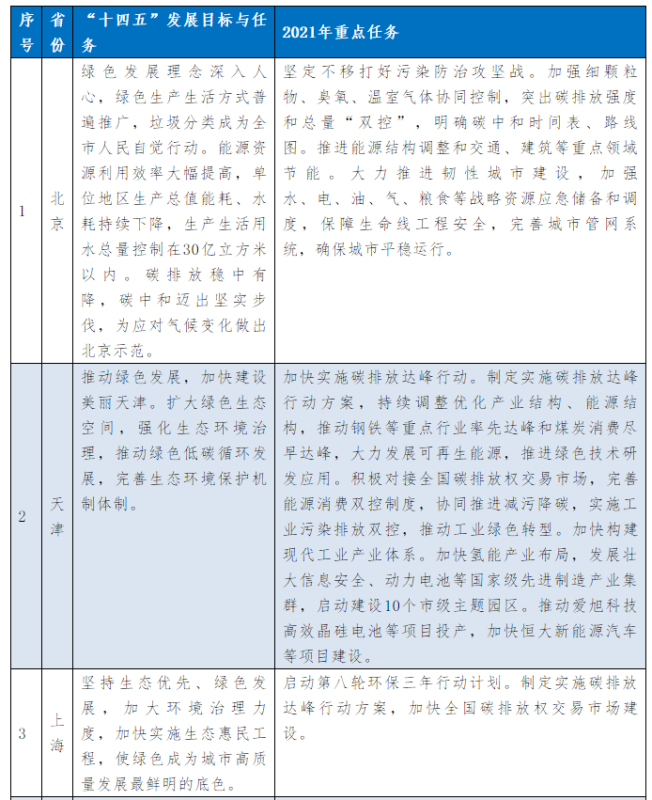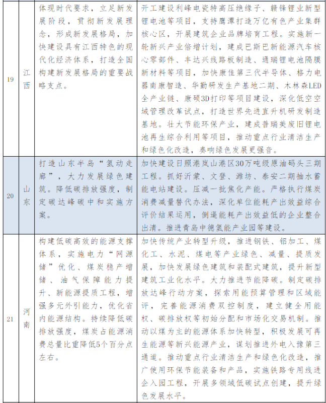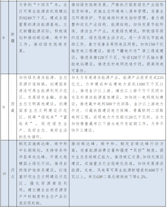 以下為31個省、自治區(qū)地方政府2021年政府工作報告中關(guān)于能源和碳中和部分的相關(guān)描述。