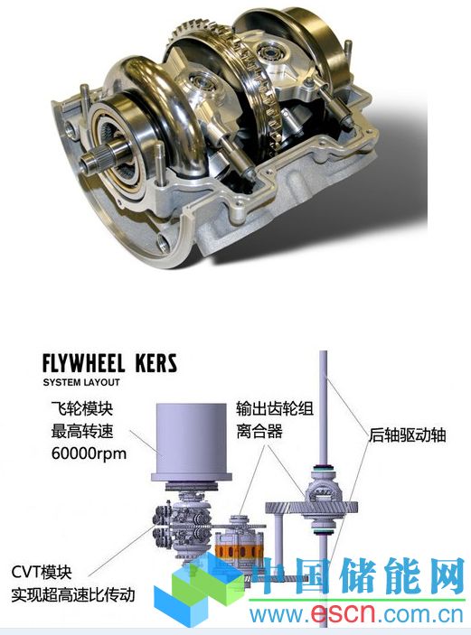 飛輪混合動(dòng)力系統(tǒng)的應(yīng)用實(shí)例是F1的KERS系統(tǒng),在保留F1賽車(chē)原有動(dòng)力總成的基礎(chǔ)上,加裝由IVT(InfinitelyVariableTransmission,無(wú)限變速器,和傳統(tǒng)CVT相比特點(diǎn)在于速比變化范圍極大)和真空飛輪構(gòu)成的機(jī)械動(dòng)能回收系統(tǒng)。沃爾沃正在嘗試將F1上的KERS技術(shù)應(yīng)用在了量產(chǎn)車(chē)型上,技術(shù)合作方是為F1車(chē)隊(duì)提供技術(shù)支持的Torotrak與FlybridSystem公司。