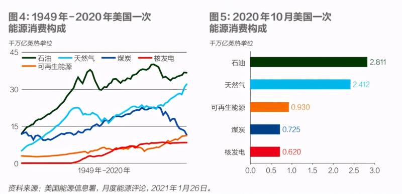 要實(shí)現(xiàn)碳達(dá)峰和碳中和,就必須相應(yīng)地調(diào)整能源結(jié)構(gòu),1949年以來,美國能源消費(fèi)結(jié)構(gòu)持續(xù)優(yōu)化。