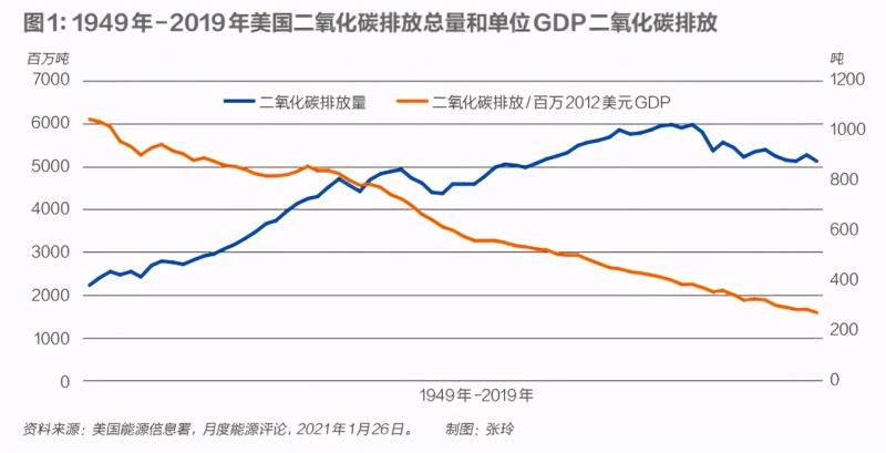 美國一次能源消費(fèi)的達(dá)峰比碳排放達(dá)峰晚11年,2018年才達(dá)峰。