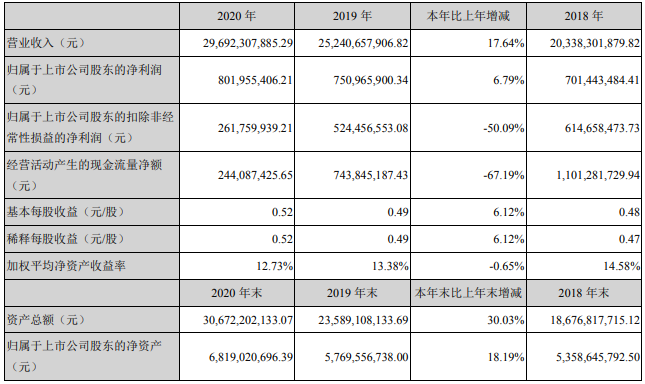 3月15日晚,欣旺達(dá)發(fā)布了2020年度報(bào)告,2020年公司實(shí)現(xiàn)營業(yè)總收入296.92億元,同比增長17.64%;實(shí)現(xiàn)歸屬母公司凈利潤8.02億元,同比增長6.79%。