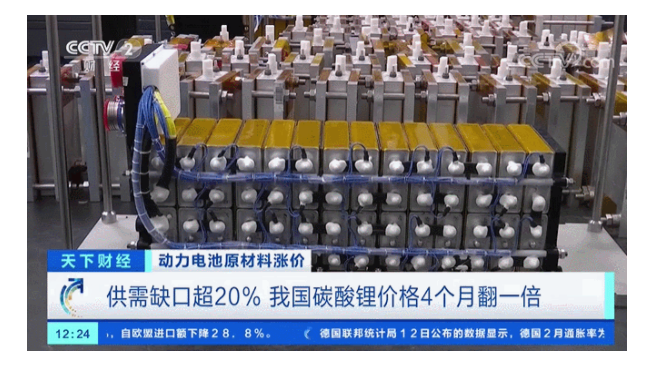 供需缺口超20% 我國碳酸鋰價格4個月翻一倍