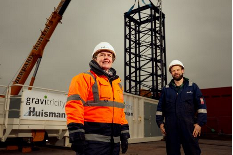 Gravitricity公司工程項(xiàng)目經(jīng)理Frances Tierney以及高級(jí)機(jī)械工程師Steven Kirk在重力儲(chǔ)能項(xiàng)目部署現(xiàn)場(chǎng)