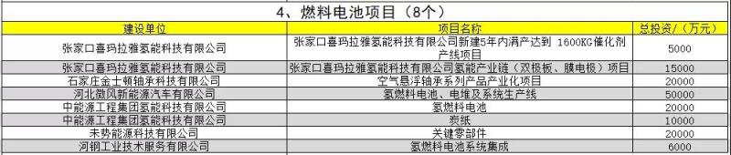 氫能裝備項目共8個,主要包含制氫、儲氫設(shè)備的生產(chǎn)制造,以及氫能裝備檢測中心的建設(shè)。