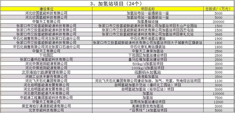 加氫站項目共24個,根據(jù)相關(guān)信息有19個加氫站規(guī)劃的日加氫能力達到了1000kg及以上。